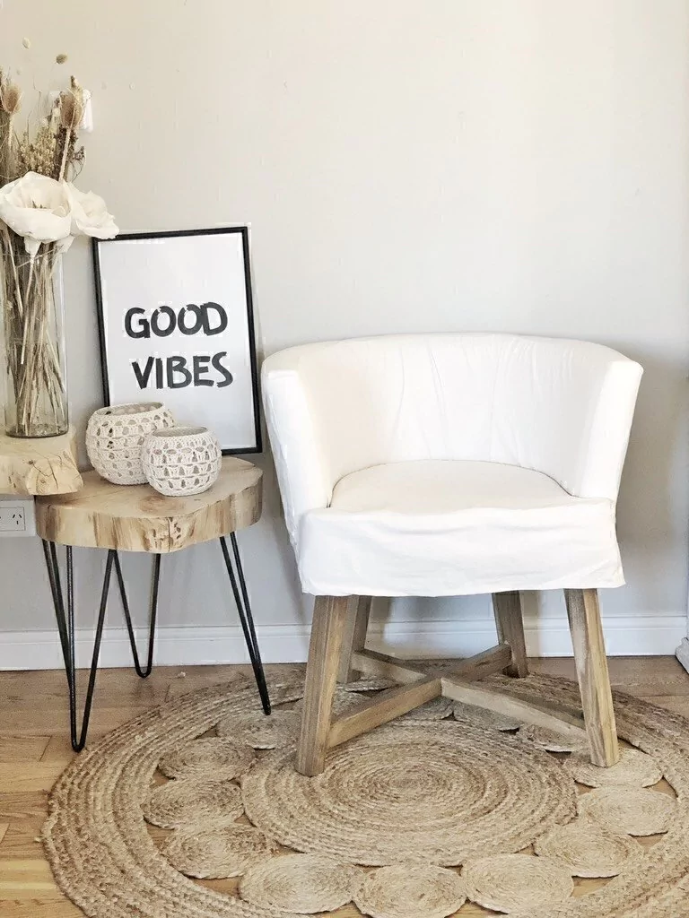Silloncito Gervasoni en madera petiribi con funda de tusor Natural o color a elección. Incluye sillón mas placa soft con funda en tussor natural